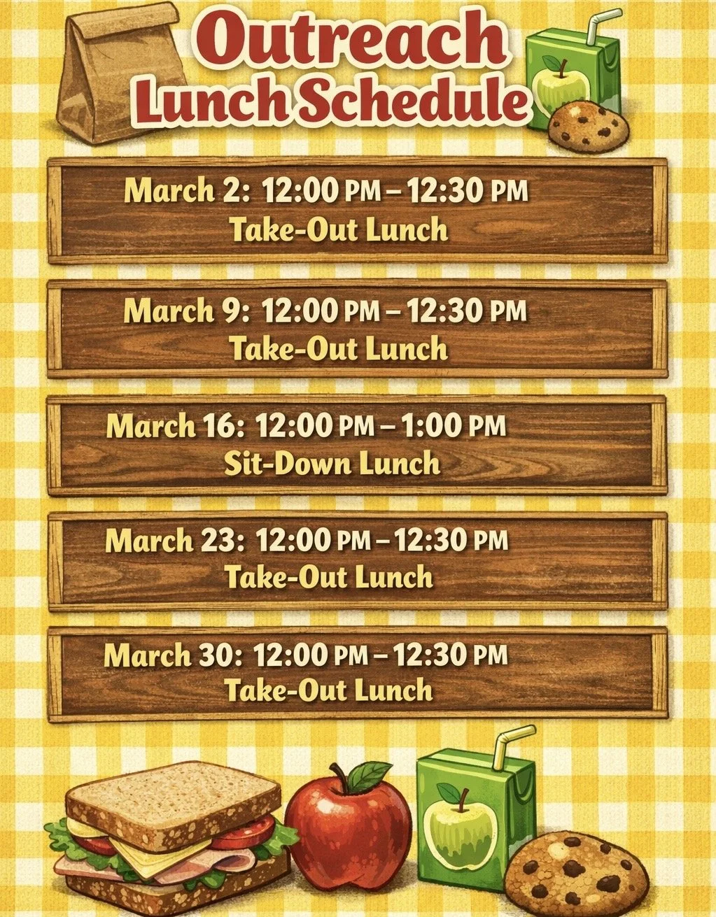 Our Clothing Closet will be open during the Sit-Down Lunch on March 16.